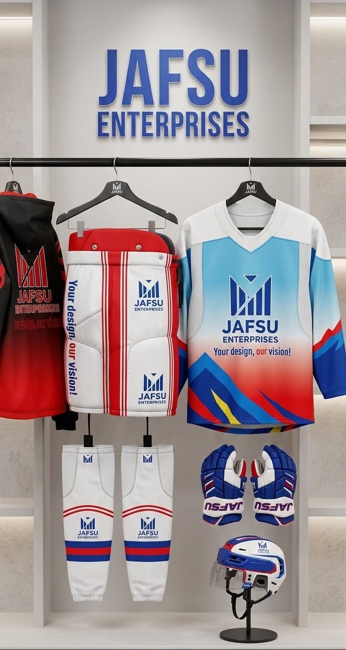 At Jafsu Enterprises, we go beyond mere uniform design; we craft unforgettable experiences. Our team of skilled artisans is passionately dedicated to creating a comprehensive range of ice hockey uniforms. From personalized jerseys that carry your unique identity to classic team kits that symbolize unity and strength and even stylish casual wear that lets you showcase your love for the game on and off the ice.